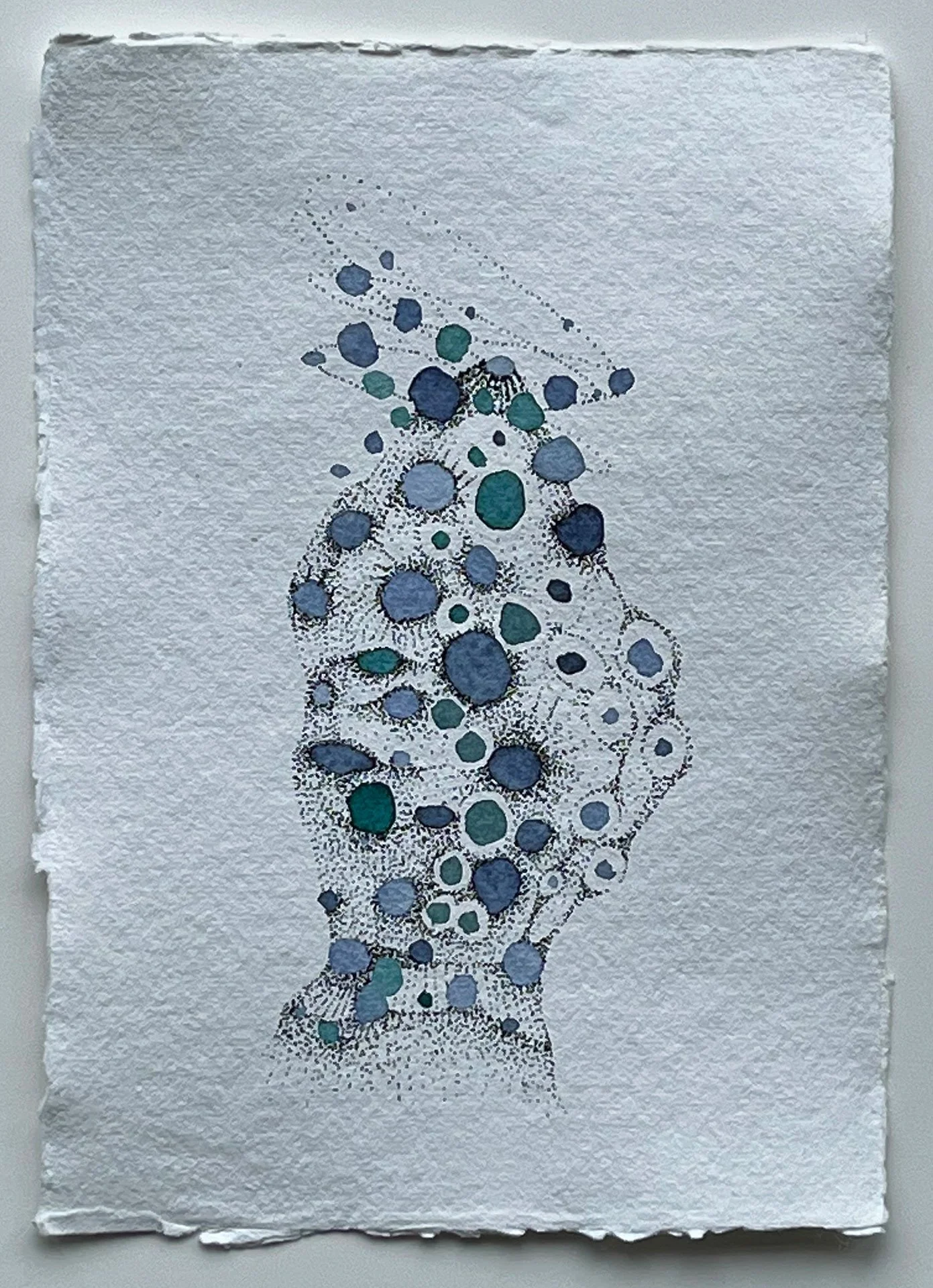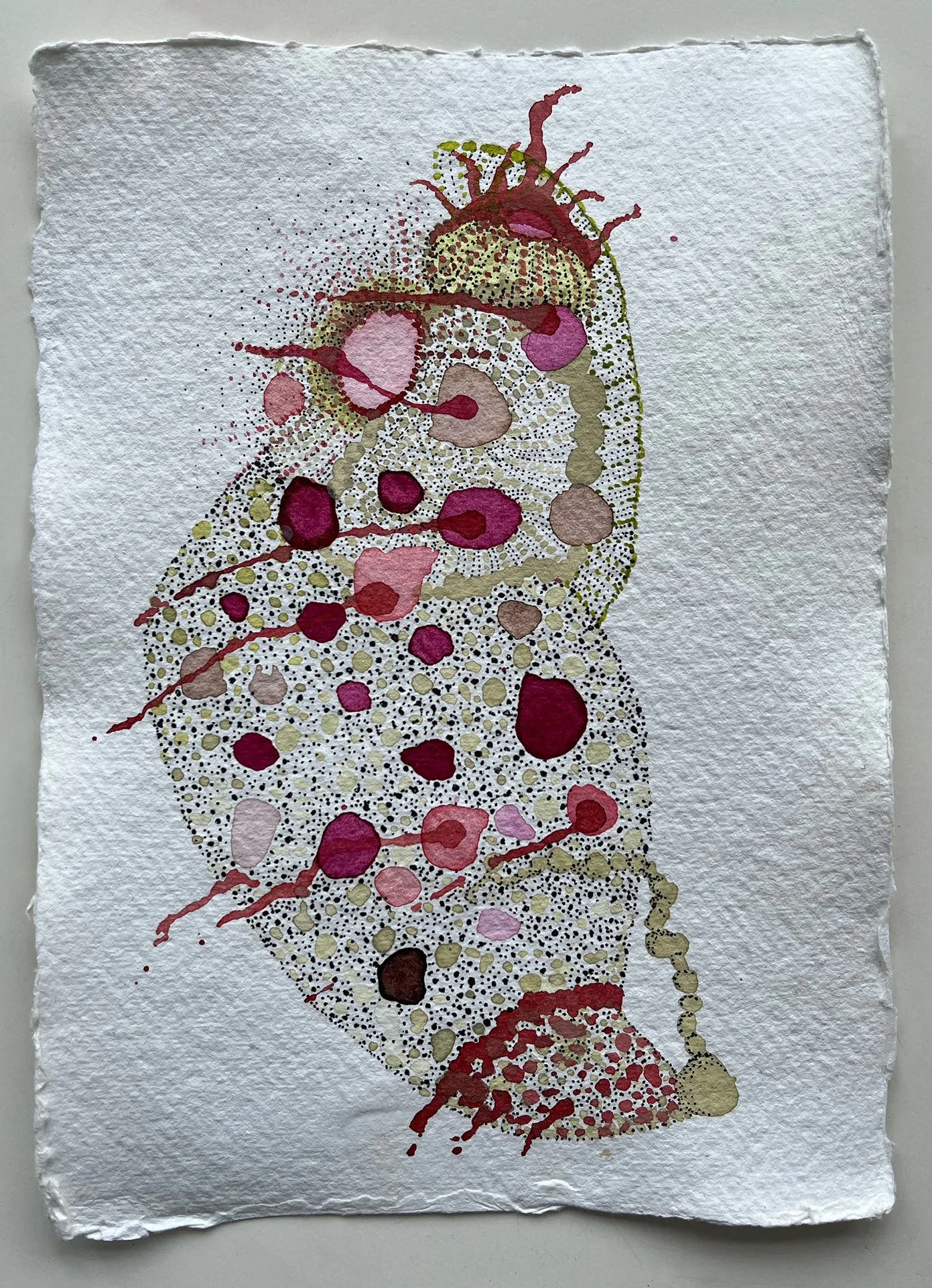 BECOMING 15 cm x 21 cm, pen and ink on Khadi paper